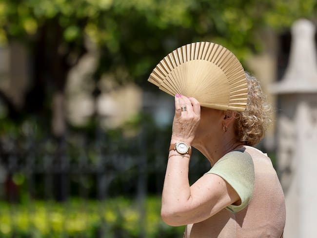 Una mujer se protege del sol con un abanico / Ana Escobar (EFE)