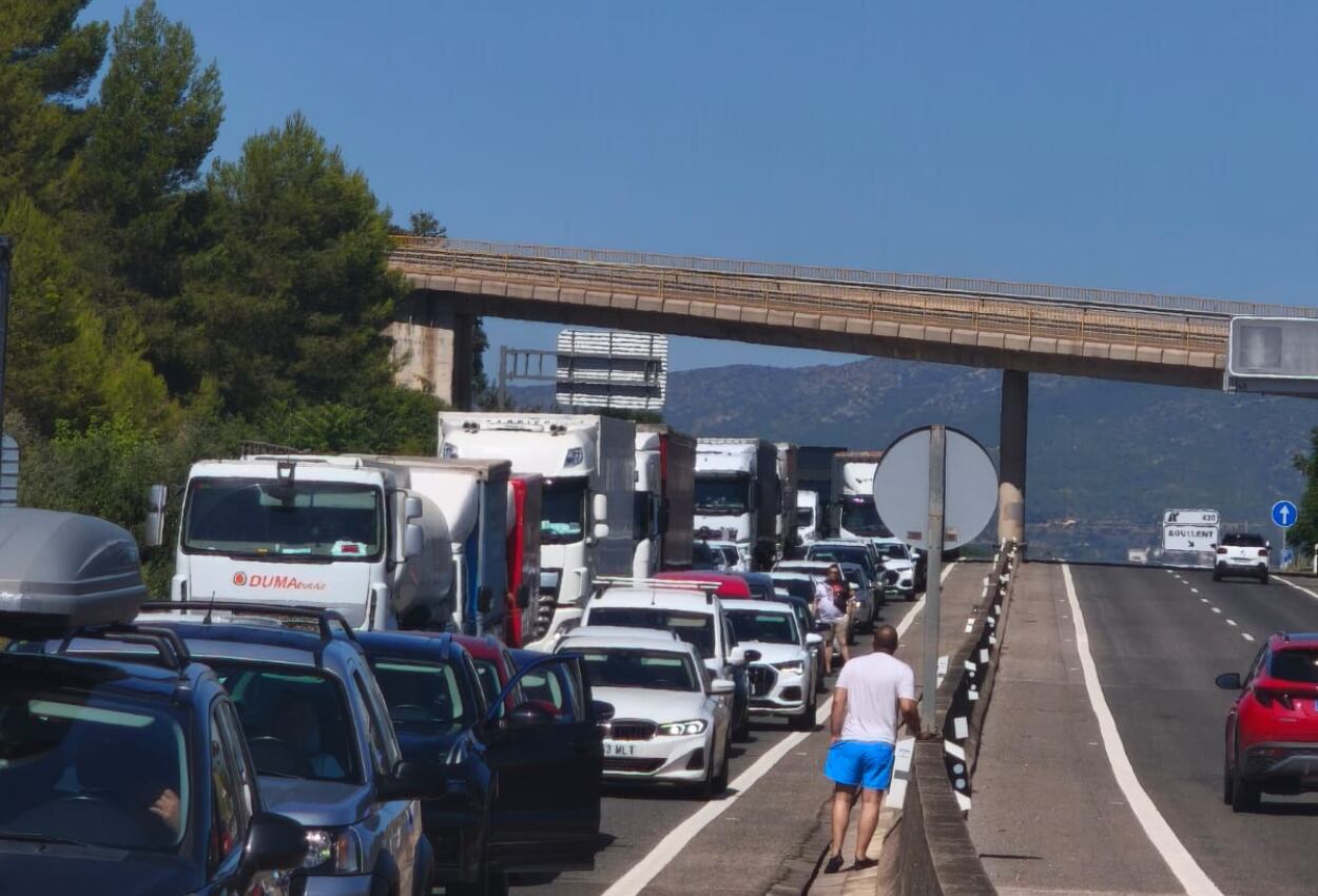 El accidente ha provocado retenciones en el tramo y un hombre de 40 años ha sido asistido por el SAMU por policontusiones y trasladado al Hospital de Ontinyent.