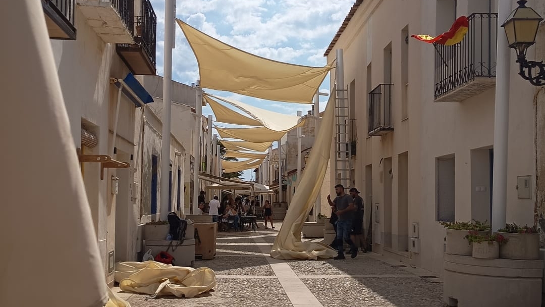 Lo cierto es que solo diez días después de haberse instalado, los toldos ya se habían estropeado. Y que desde un principio se decidió que se iban a desmontar a mitad de julio, al carecer la concejalía de Turismo de los permisos necesarios por parte de la Conselleria de Cultura.