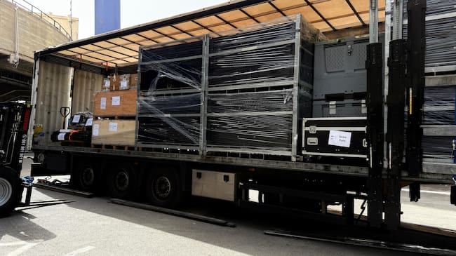 Imagen del camión de la empresa AIM Sport con el material de la UTV / Pedro Vera