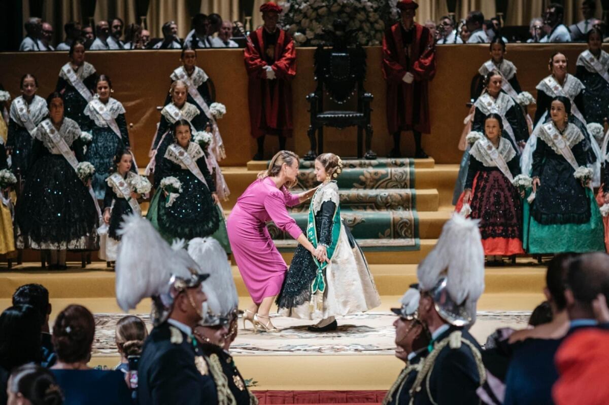 La alcaldesa de Castellón, Begoña Carrasco, ha sido la encargada de hacer entrega de la banda verde que acredita a la Reina de las Fiestas como máxima representante de los niños y niñas de la ciudad.