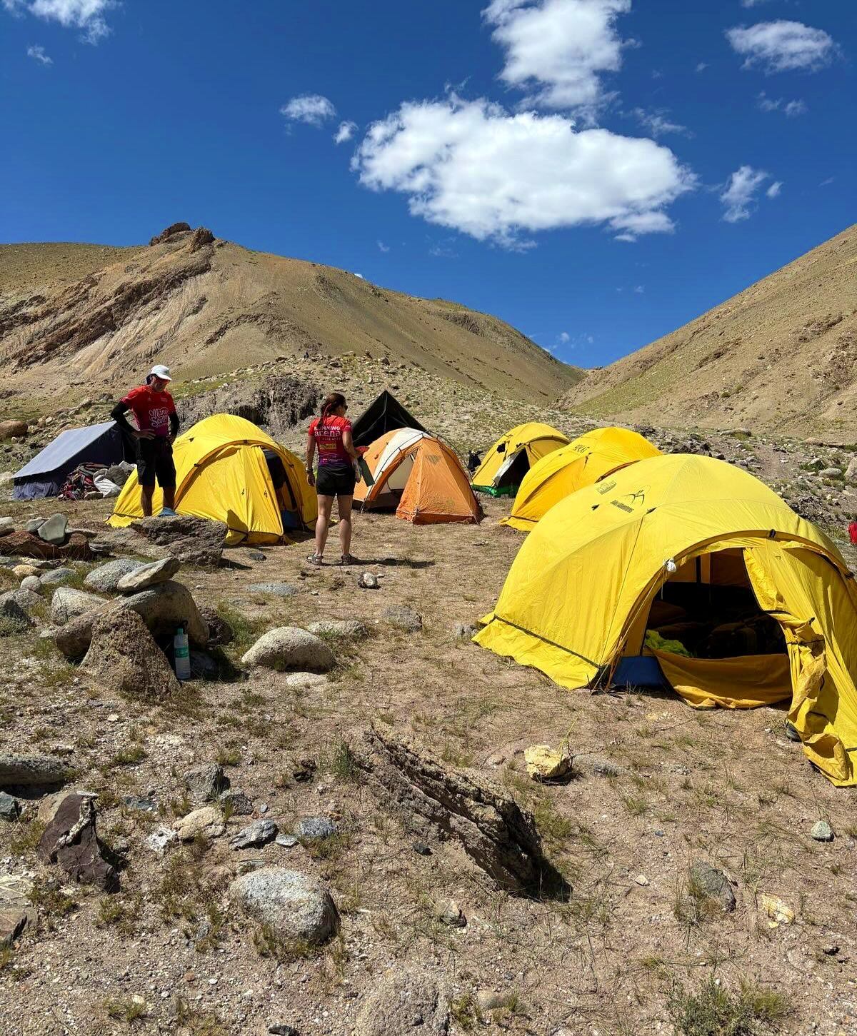 A mediados de agosto hicieron las maletas y se fueron a esta zona cuya capital es Ladakh y que se encuentra cerca de la frontera con Pakistán. El día 19 llegaron a Leh, a 3.500 metros de altitud, en donde empezaron el proceso de aclimatación. Unos pocos días después se pusieron en marcha para desplazarse al campamento base ubicado de 5,200 metros, para ello tuvieron que atravesar distintas cumbres de 5.500 metros.