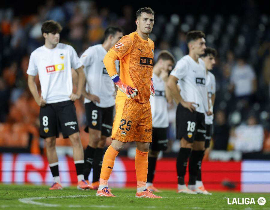 1 – Valencia: Agirrezabala; Foulquier, Diakhaby, Tárrega, Gayà; Luis Rioja (Ramazani, m.86), Javi Guerra (Pepelu, m.55), Santamaría, Danjuma (Raba, m.78); Almeida (Diego López, m.55) y Hugo Duro (Lucas Beltrán, m.55).