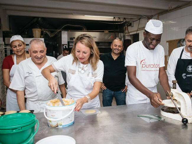 La alcaldesa de Castellón, Begoña Carrasco, ha visitado un obrador de panadería en el Grupo San Agustín y San Marcos