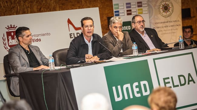 El compromiso llegó después de que el alcalde de Elda, Rubén Alfaro, aprovechara su intervención institucional para solicitar que el centro de la ciudad pueda tutorizar uno de los nuevos títulos que prepara la UNED. Escudero recogió el guante y confirmó públicamente que Elda asumirá la formación presencial de uno de ellos.