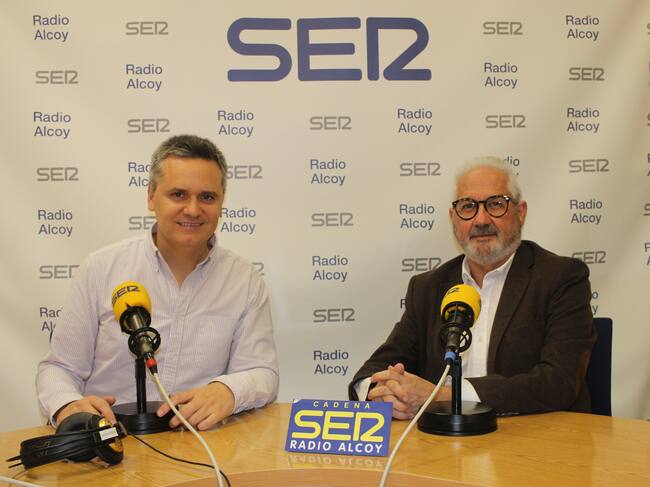 Luis Alberto Pérez Velarde e Ignacio Trelis, en el estudio central de Radio Alcoy