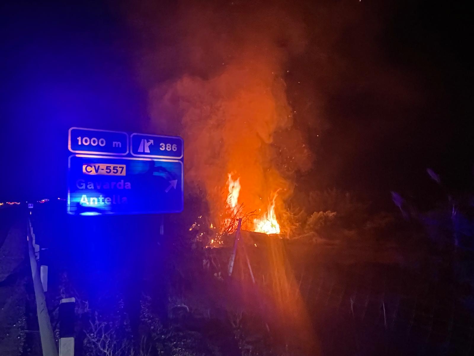 El Consorci Provincial de Bombers de València ha intervenido esta tarde de domingo en dos actuaciones destacadas en dos de nuestras comarcas centrales: un accidente de tráfico con una persona atrapada en Vallada y un incendio de cañar junto a la A-7 en Gavarda.