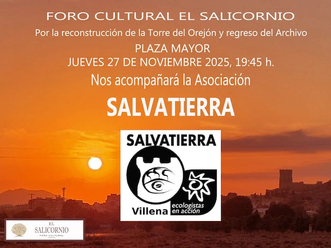 El Foro Cultural “El Salicornio" continúa organizando, cada último jueves de mes, el encuentro reivindicativo que solicita la construcción de la Torre del Orejón, con su autómata, y unida a esta petición al ayuntamiento, la vuelta del archivo municipal
