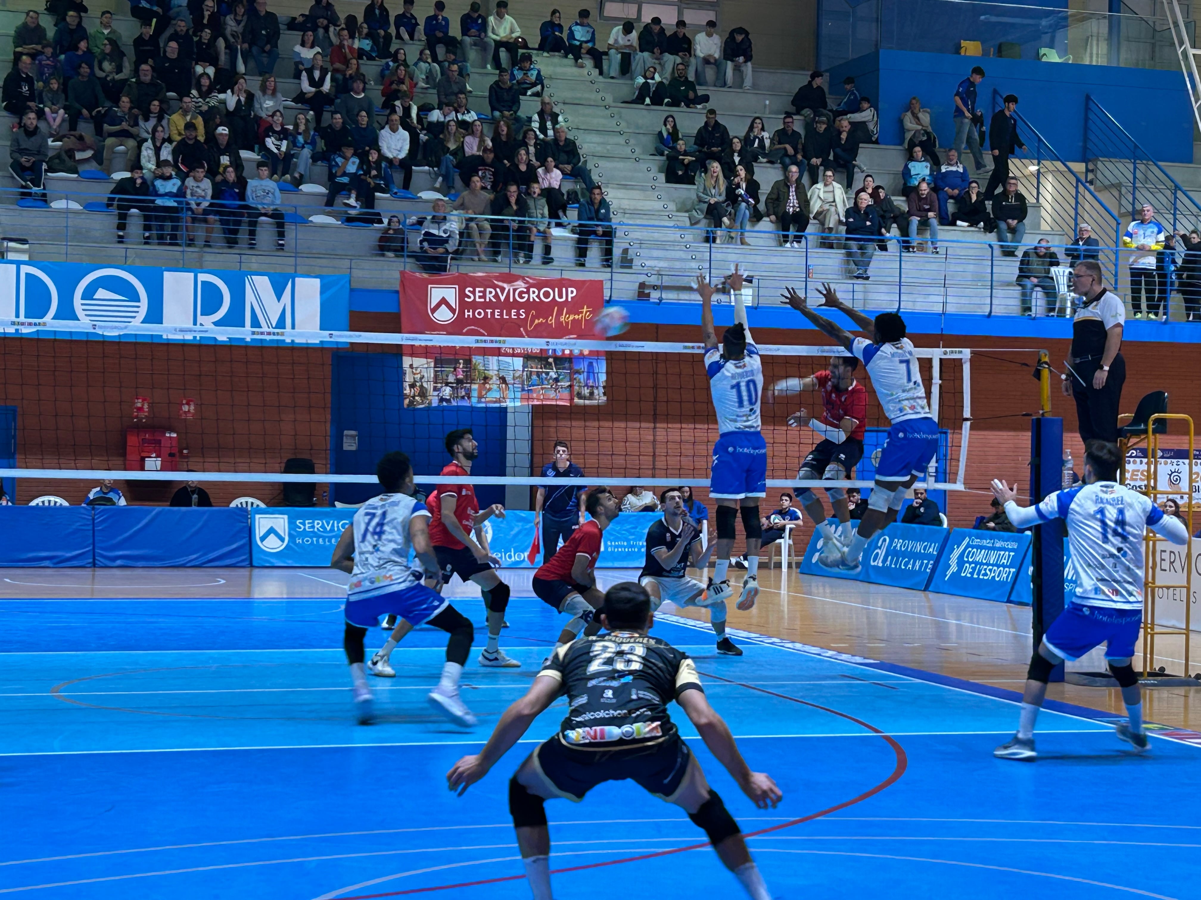 El cuarto y último set fue, a la postre, el mejor resumen de un partido que fue, por momentos, de dominio local, por otros, visitante y, en algunos instantes, igualado. Fue el Servigroup Benidorm el que marchó por delante durante la práctica totalidad de esa manga, pero una gran reacción canaria en el tramo final (cuando Benidorm había contado ya con dos bolas de set) permitió a La Laguna, con un parcial de 29-31, asaltar el Palau, marcharse con los tres puntos y dejar a los de Iván Navarro con opciones muy remotas ya de meterse en la Copa del Rey.