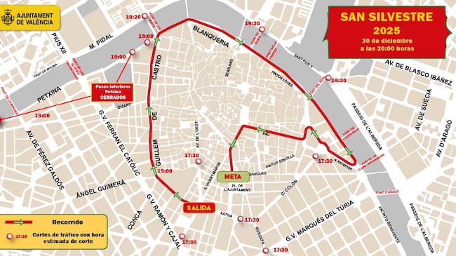 El Ayuntamiento de València ha planificado un dispositivo especial de tráfico con motivo de la San Silvestre 2025, que este año celebra su 40 edición, y en la que participará un total de 18.000 deportistas tanto en la modalidad competitiva como en la popular y festiva.