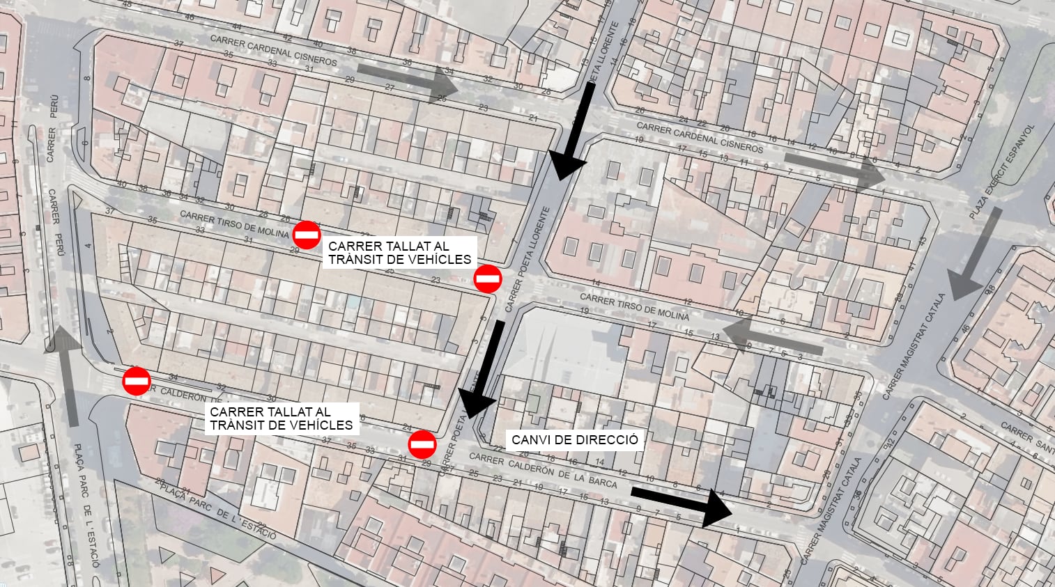 Permanecerá cortado el tramo de las calles Calderón y Tirso de Molina comprendido entre las calles Perú y Poeta Lorente