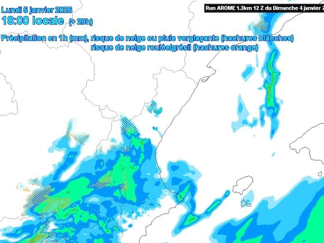 Mapa de previsión de lluvias a las 18:00 horas de este lunes 6 de enero en Castellón (AVAMET).
