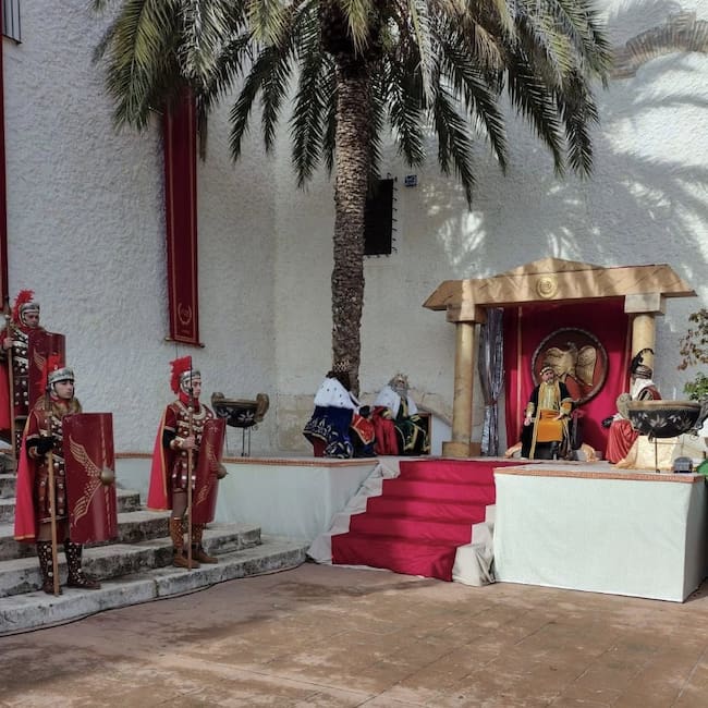Como cada mañana del día de Reyes, la Agrupación de fiestas de Navidad y Reyes de Las Virtudes ha situado el poblado hebreo en la explanada del Santuario, donde también están instalado los escenarios de los momentos del Auto Sacramental que se representan. Actores principales, San José, La Virgen María, Herodes, actores secundarios, el bloque se soldados romanos, y los pastores, han vuelto a representar esta tradición, que inicia también su centenario,