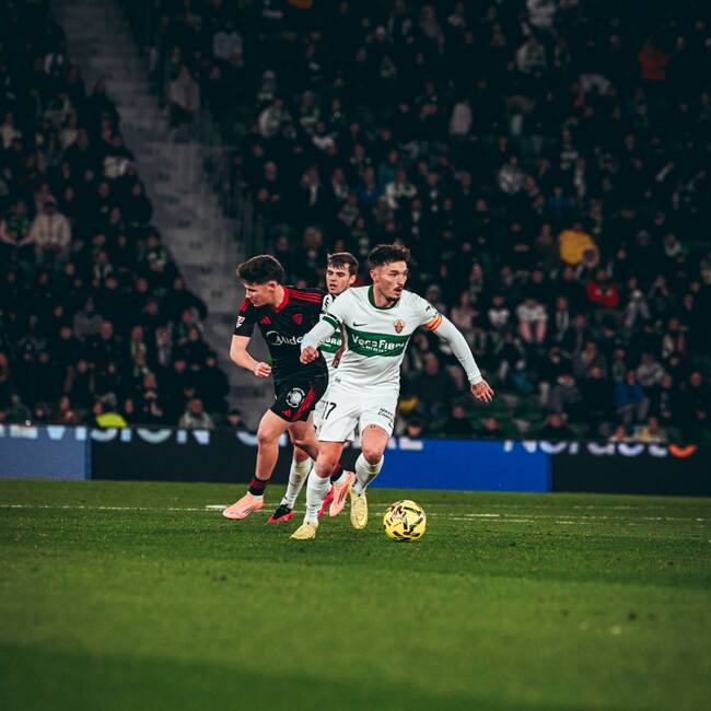 El partido arrancó con un Elche muy intenso, presionando la salida de balón de un Sevilla impreciso. El premio llegó pronto, en el minuto 11, cuando Aleix Febas aprovechó una asistencia de Martim Neto para batir a Vlachodimos con un disparo ajustado. El dominio local se consolidó en la segunda mitad con el tanto de Valera, que ponía un 2-0 que parecía encarrilar la noche ante la falta de ideas del conjunto hispalense.