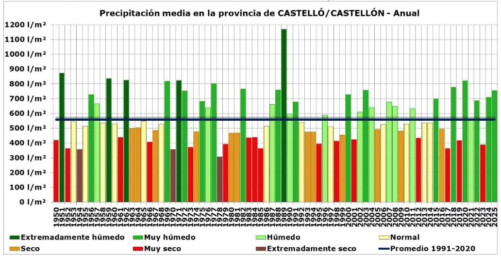 La provincia de Castellón cerró 2025 como uno de los años más cálidos y lluviosos desde que existen registros, según el avance climatológico anual publicado este viernes por la Agencia Estatal de Meteorología.