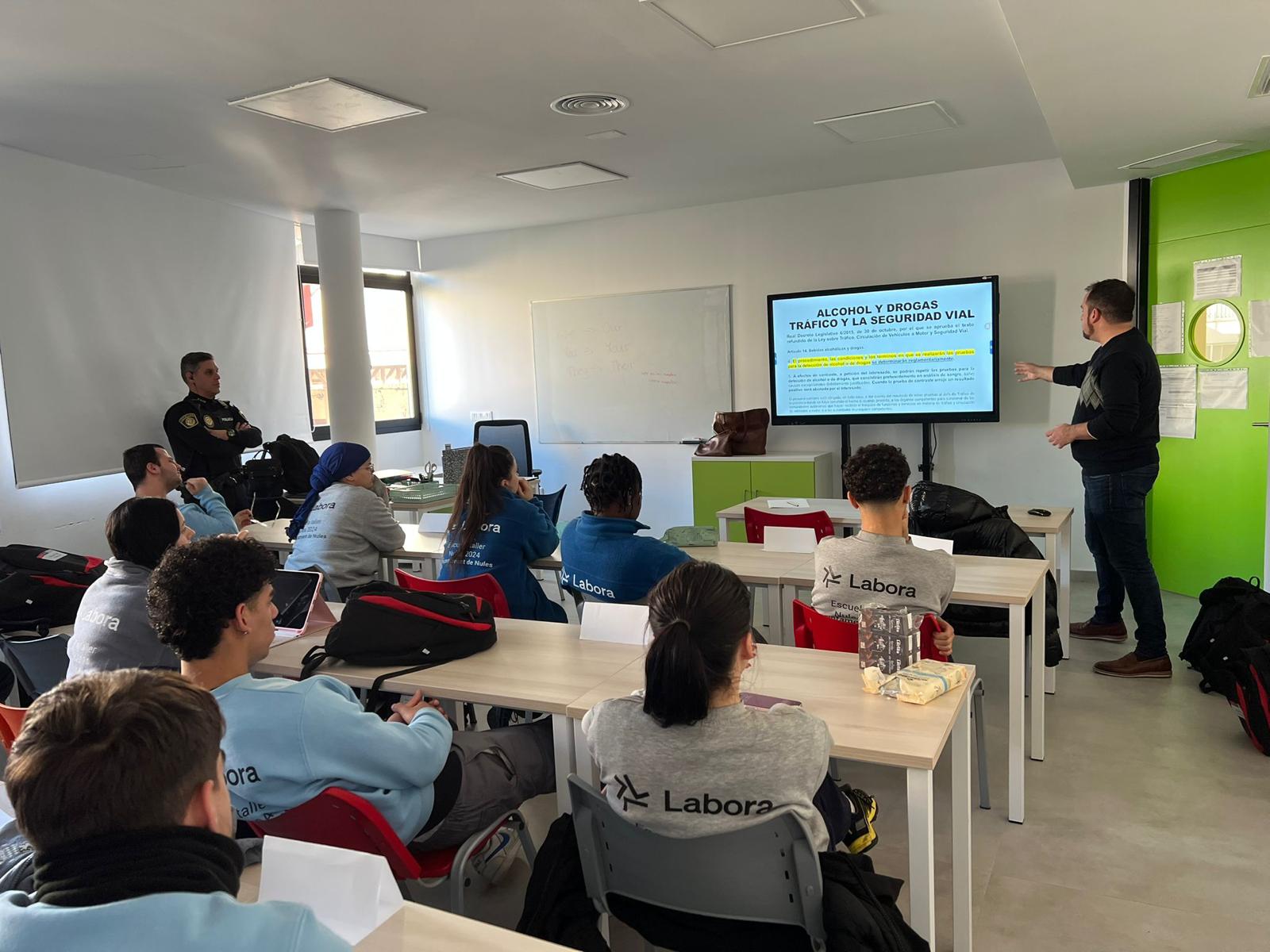 La Policía Local de Nules ha impartido una charla para concienciar sobre el consumo de alcohol y drogas en la conducción. En concreto, ha sido el equipo de Agentes Tutores de la Policía Local el encargado de desarrollar esta conferencia dirigida, en esta ocasión, al alumnado de la Escuela Taller.