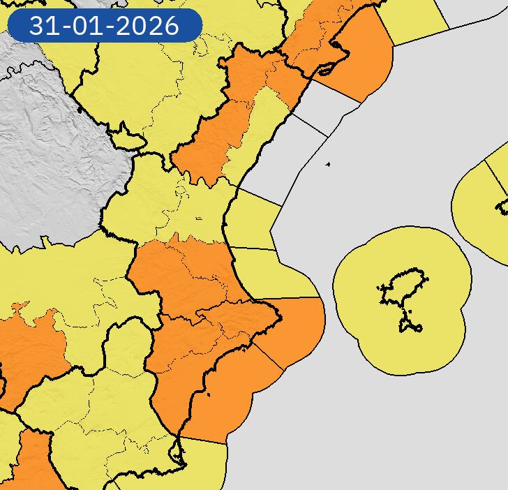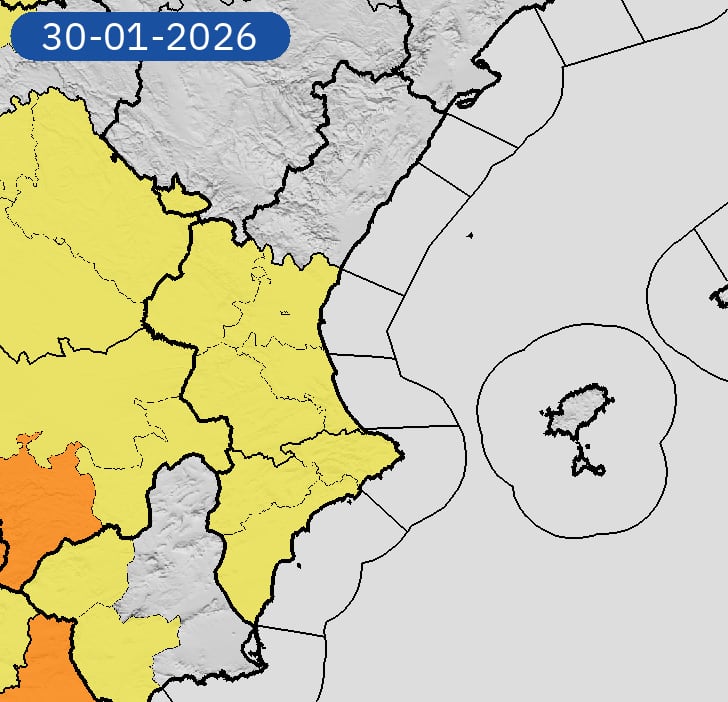 Sin embargo, para mañana la alerta cambia a nivel naranja en el interior sur de València, afectando a las comarcas de la Canal de Navarrés, la Ribera Alta y la Costera, con rachas de viento de hasta 90 km/h. Los avisos estarán activos hasta las 23:59 horas del 31 de enero de 2026.