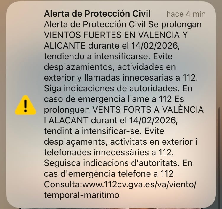 Los habitantes del Medio Vinalopó han recibido en sus teléfonos móviles la alerta de Protección Civil