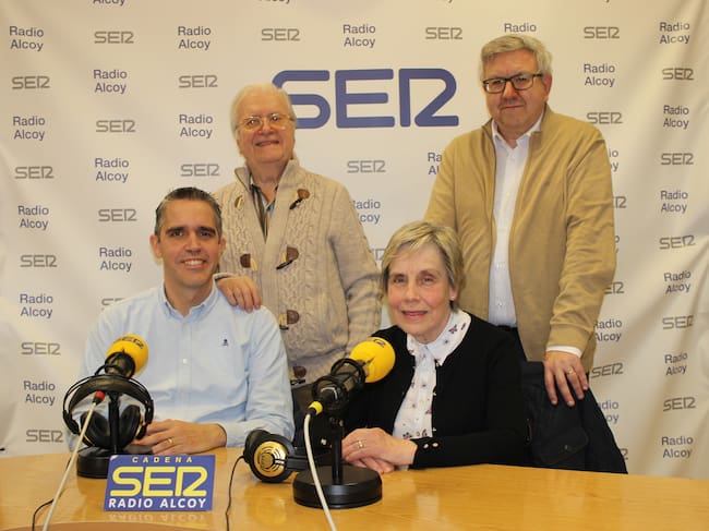 Jordi Martínez Santacreu, Encarna Santacreu, Paco Aznar i Josep Lluís Santonja, en l'estudi central de Radio Alcoy