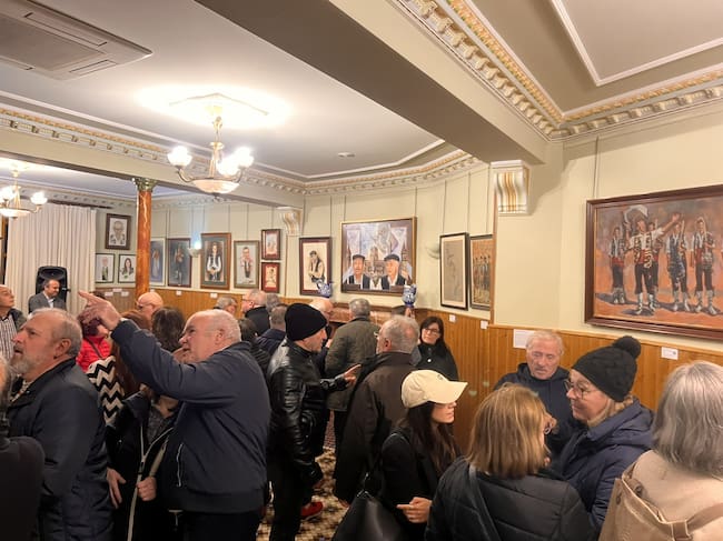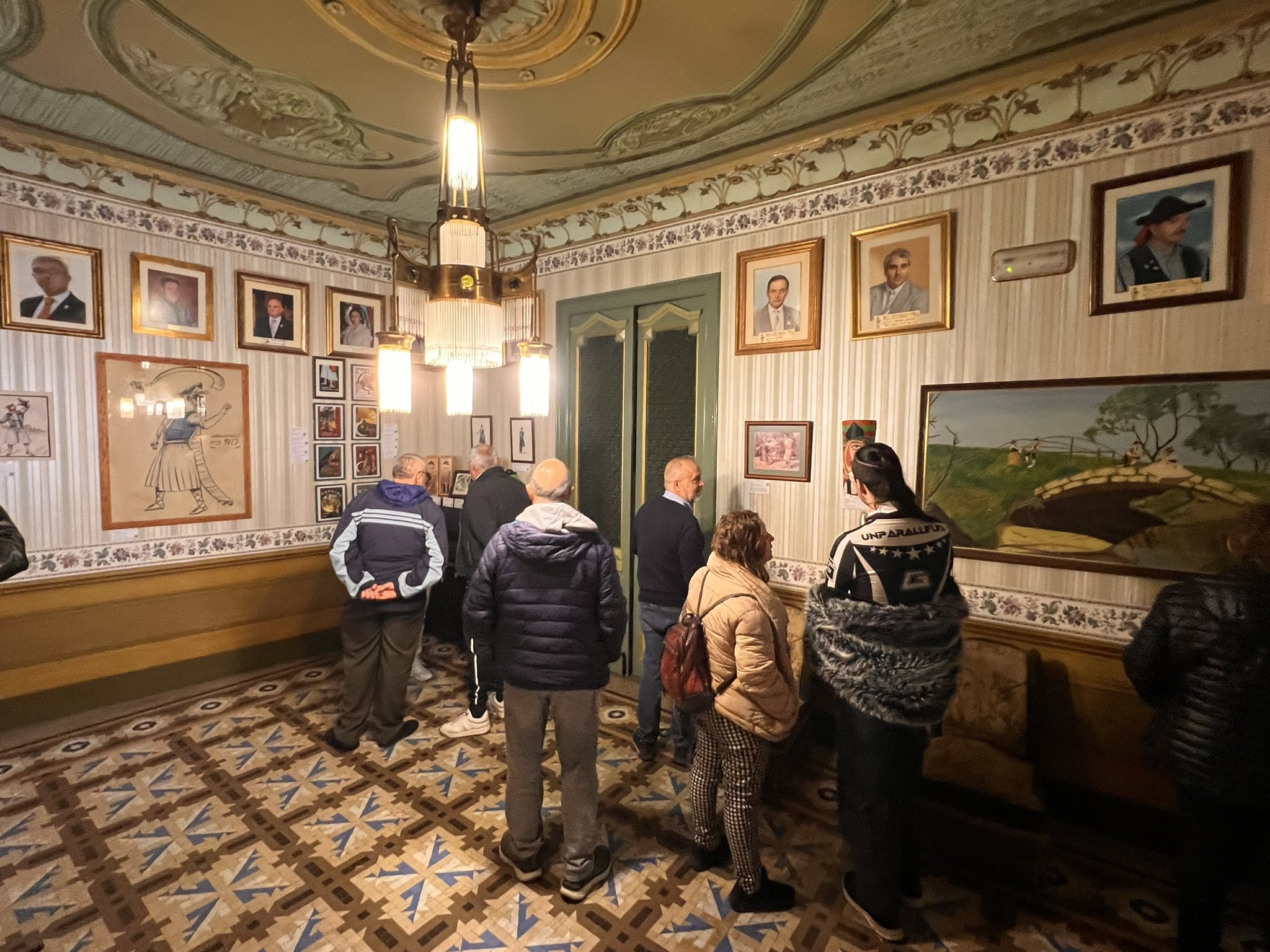 La muestra se presenta 60 obras de arte en una muestra de artes plásticas en el local social de la comparsa, con motivo de su centenario