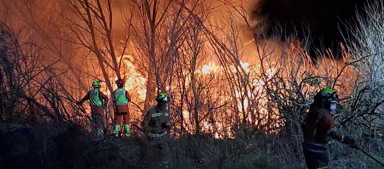 Un incendio de cañar declarado a las 23:23 horas de este viernes junto a la CV-60 movilizó a un amplio dispositivo de emergencias en un barranco situado entre los términos municipales de L’Olleria y Alfarrasí, a la altura de la Casa Blanca.