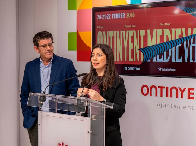 La regidora de Festes, Àngels Muñoz, i l'alcalde d'Ontinyent, Jorge Rodríguez, en la presentació de la nova edició d'Ontinyent Medieval / Ajuntament d'Ontinyent