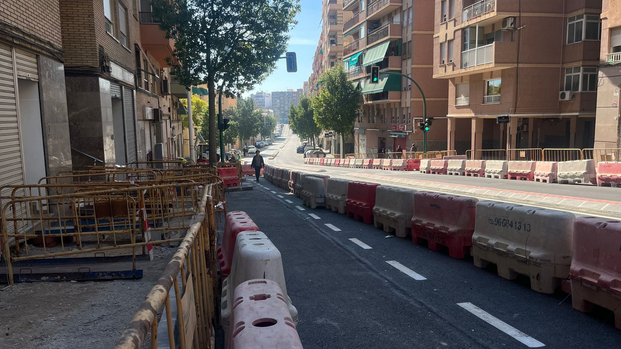 La vía se ha abierto recientemente al tráfico, pero los residentes aún no pueden transitar con normalidad por las aceras, que continúan levantadas