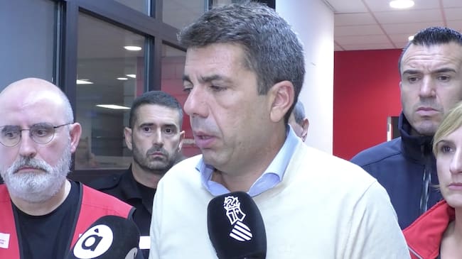 Carlos Mazón durante su primera comparecencia pública en el Cecopi del 29 de octubre de 2024. / GVA