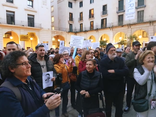 “Vivienda regalada para los compas de Barcala”, “Agua, luz y techo, tenemos derecho” o “Vergüenza me daría proteger a los rentistas” son algunos de los lemas que han coreado este miércoles medio millar de ciudadanos de hasta 80 asociaciones y colectivos vecinales que se han dado cita en la plaza del Ayuntamiento de Alicante.