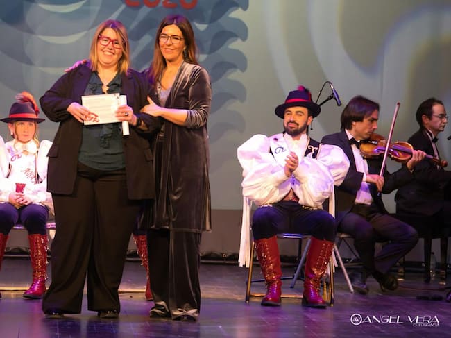 Rocío Vera, nombrada Socia de Honor, junto a Manuela, presidenta de la Comparsa de Zíngaros. / Ángel Vera Fotografía