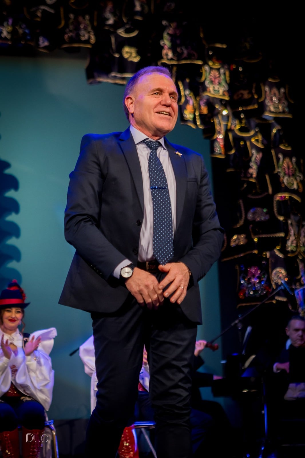 Las actrices Begoña Tenés y Maite Yago se encargaron de conducir la velada con gran complicidad, interpretando a una trabajadora de la Turismfo y a una influencer empeñada en acaparar protagonismo. La música en directo también ocupó un papel central, con las sopranos Teresa Albero y Claudia Menor, el barítono Pedro Lluch, acompañados al piano por Juan Carlos Vázquez y el cuarteto de cuerda de la Orquesta Rodríguez Albert. La gala concluyó emocionando a todos con la interpretación del himno de la comparsa, Alma Zíngara.