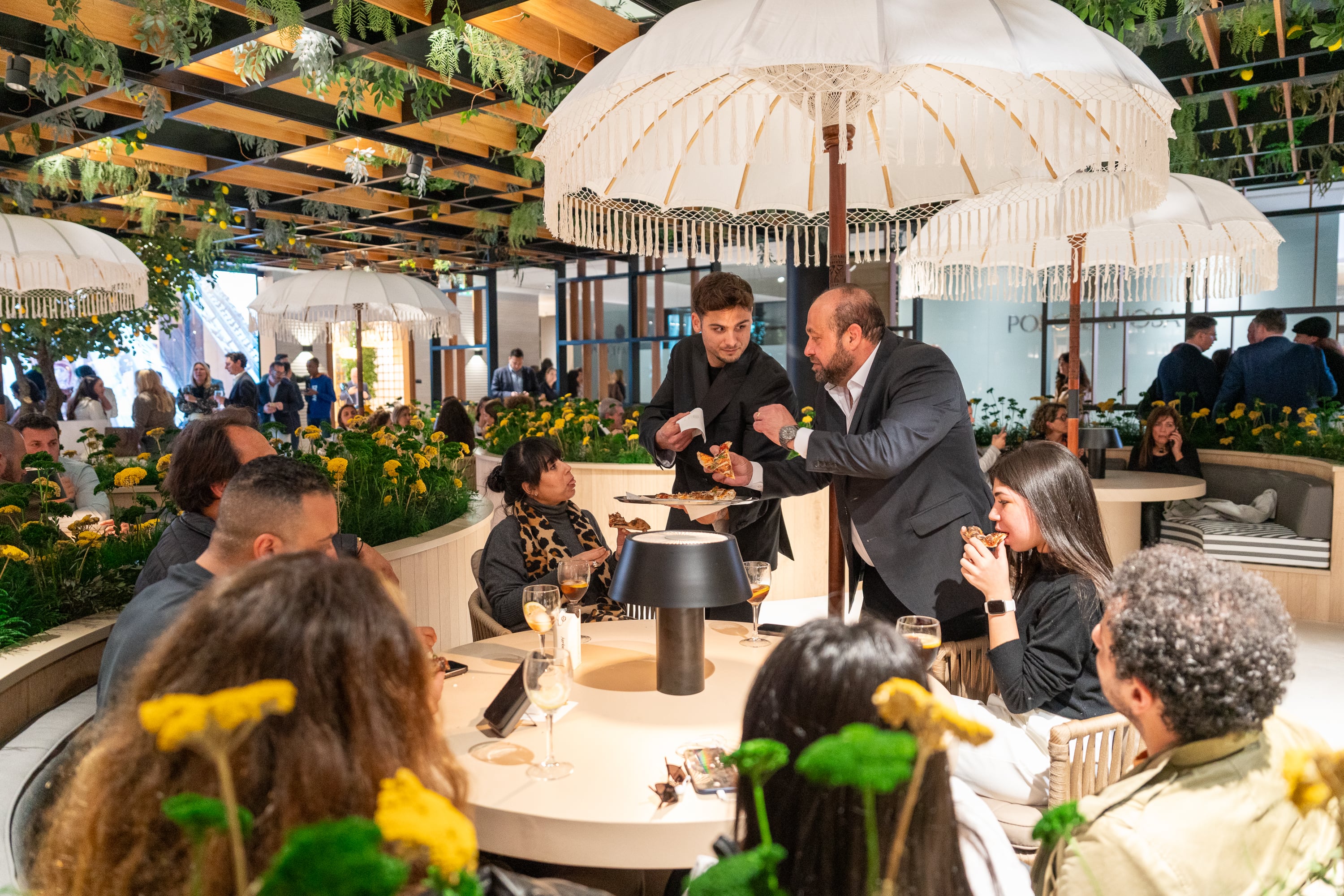 El showroom de Porcelanosa Grupo se convirtió en el escenario de ‘Ópera & Pizza’, una acción que fusionó el punto clásico de este género musical y el toque más urbano de la pizza. Los cantantes líricos sorprendieron al público presente, desplazándose entre los asistentes e irrumpiendo desde distintos puntos del espacio, mientras las arias se entrelazaban con el servicio de pizzas gourmet y antipasti.