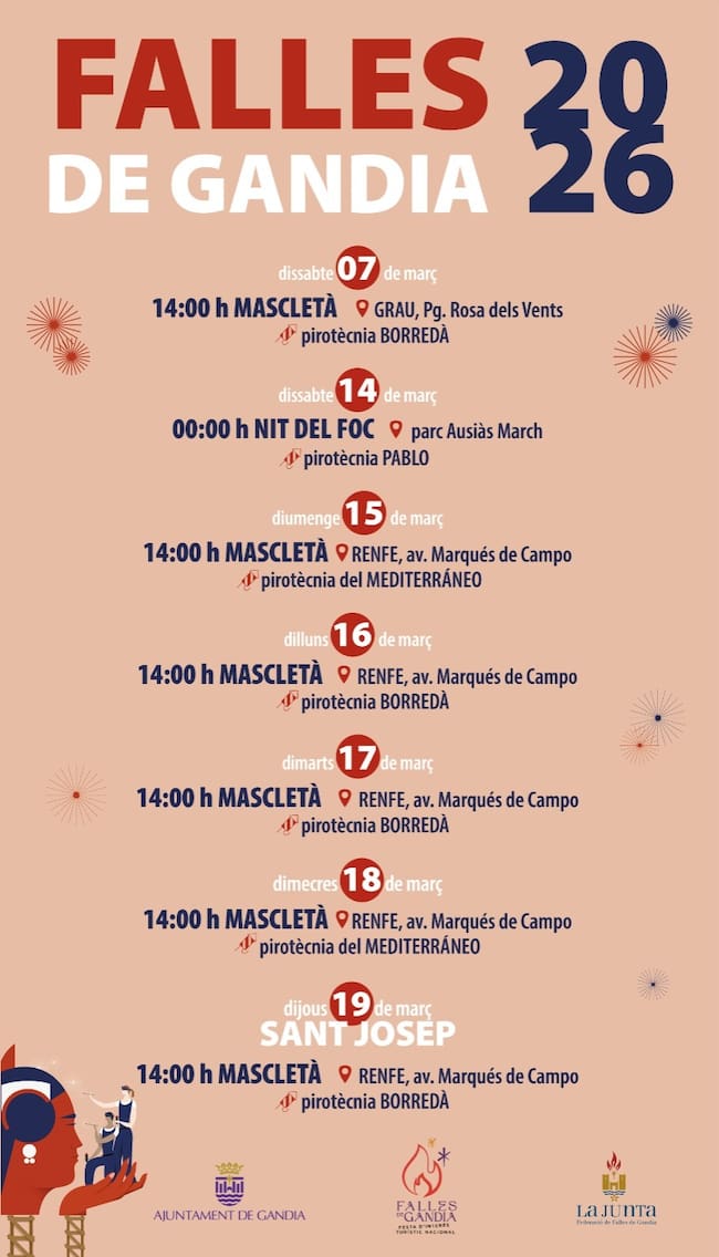 Además de les "mascletades" los días de Fallas, este sábado 7 de marzo tendrá lugar la primera "mascletà" en el Grau de Gandia. Como siempre, se disparará a las 14 horas.