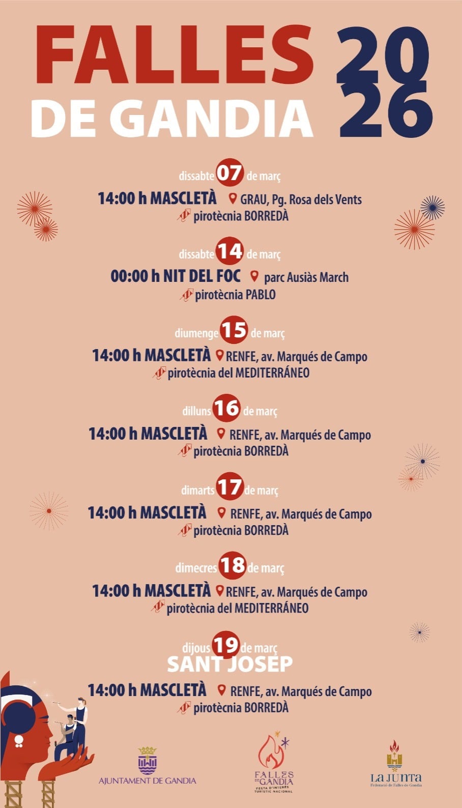Como novedad también, se traslada la Nit del Foc. Habitualmente se celebra en la semana fallera, pero esta vez tendrá lugar el fin de semana previo, el sábado 14 a las 0.00 h.