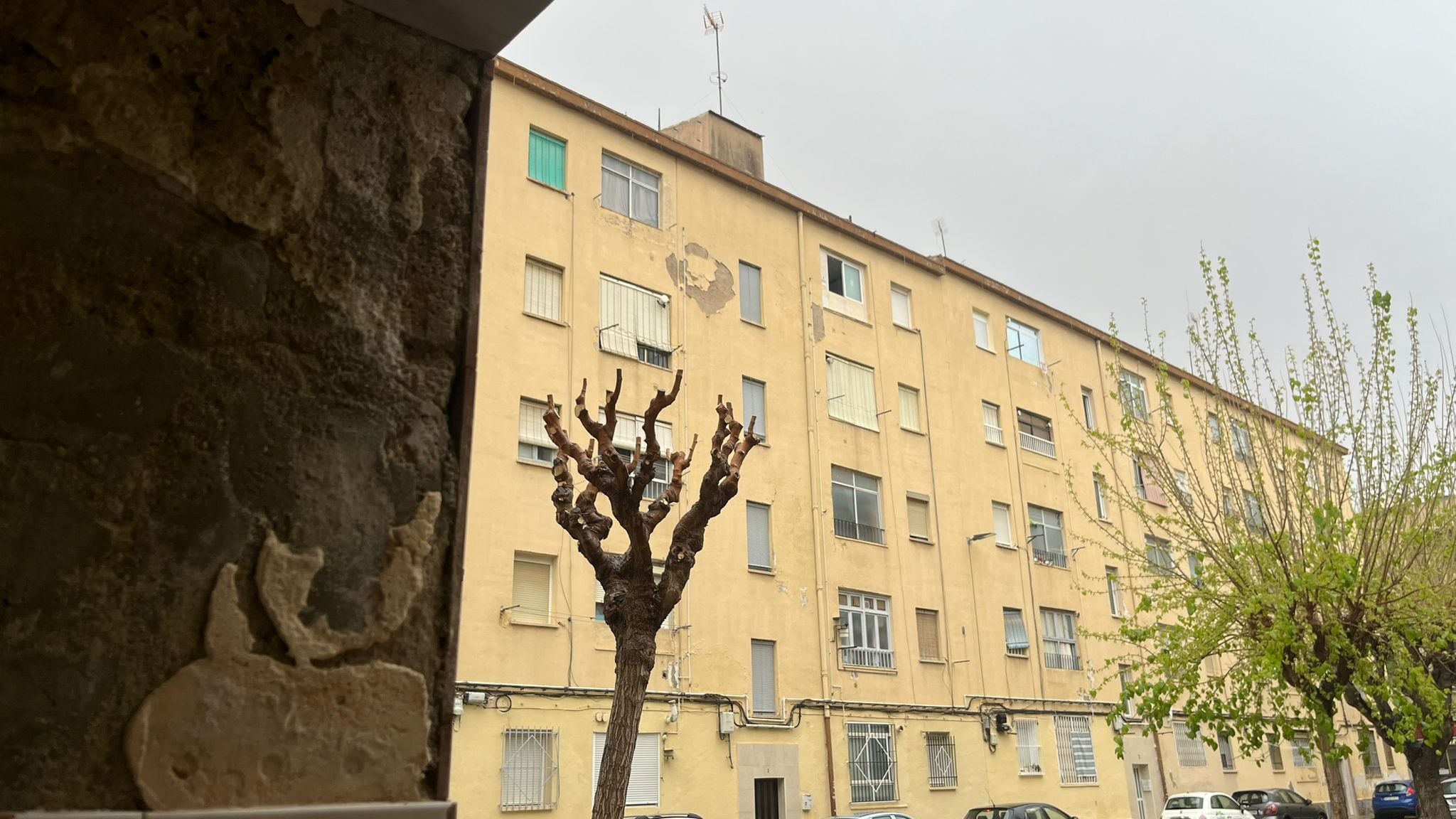Según relatan los residentes, los seis bloques de la plaza presentan aluminosis, una patología común en construcciones levantadas entre los años 50 y 70. Este fenómeno se produce cuando el material reacciona con la humedad y el dióxido de carbono, lo que provoca que pierda resistencia, se vuelva poroso y degrade las viguetas, poniendo en riesgo la estabilidad del edificio.