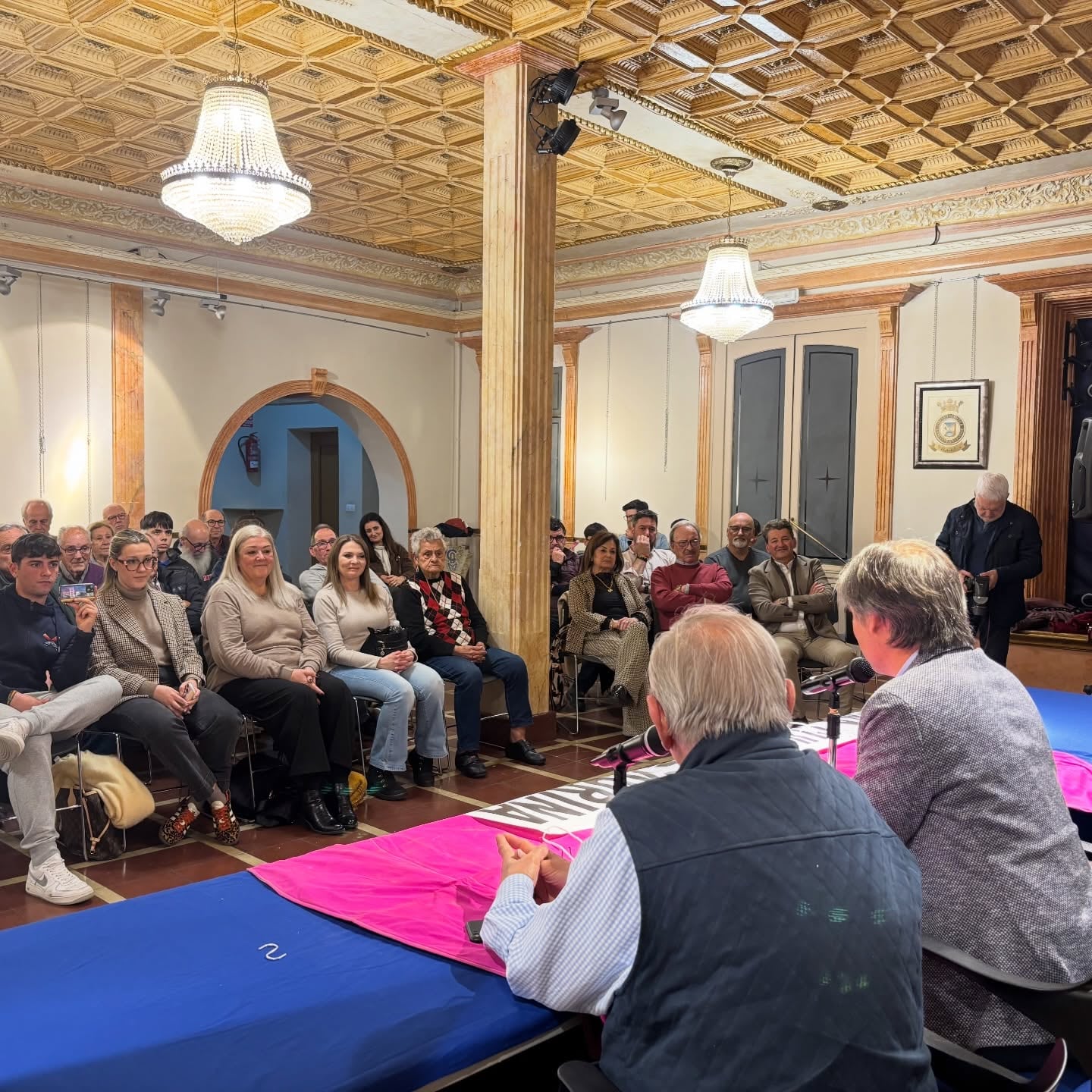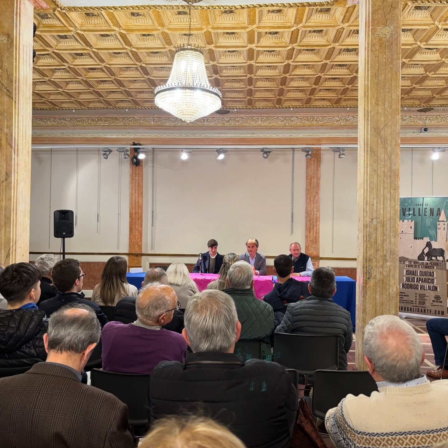 El acto de presentación, en las dependencias del Círculo Villenense, contó con aficionados taurinos locales, representantes de la Peña Cultural Taurina Villenense, familiares y amigos del joven torero villenense, y varios concejales del ayuntamiento de Villena