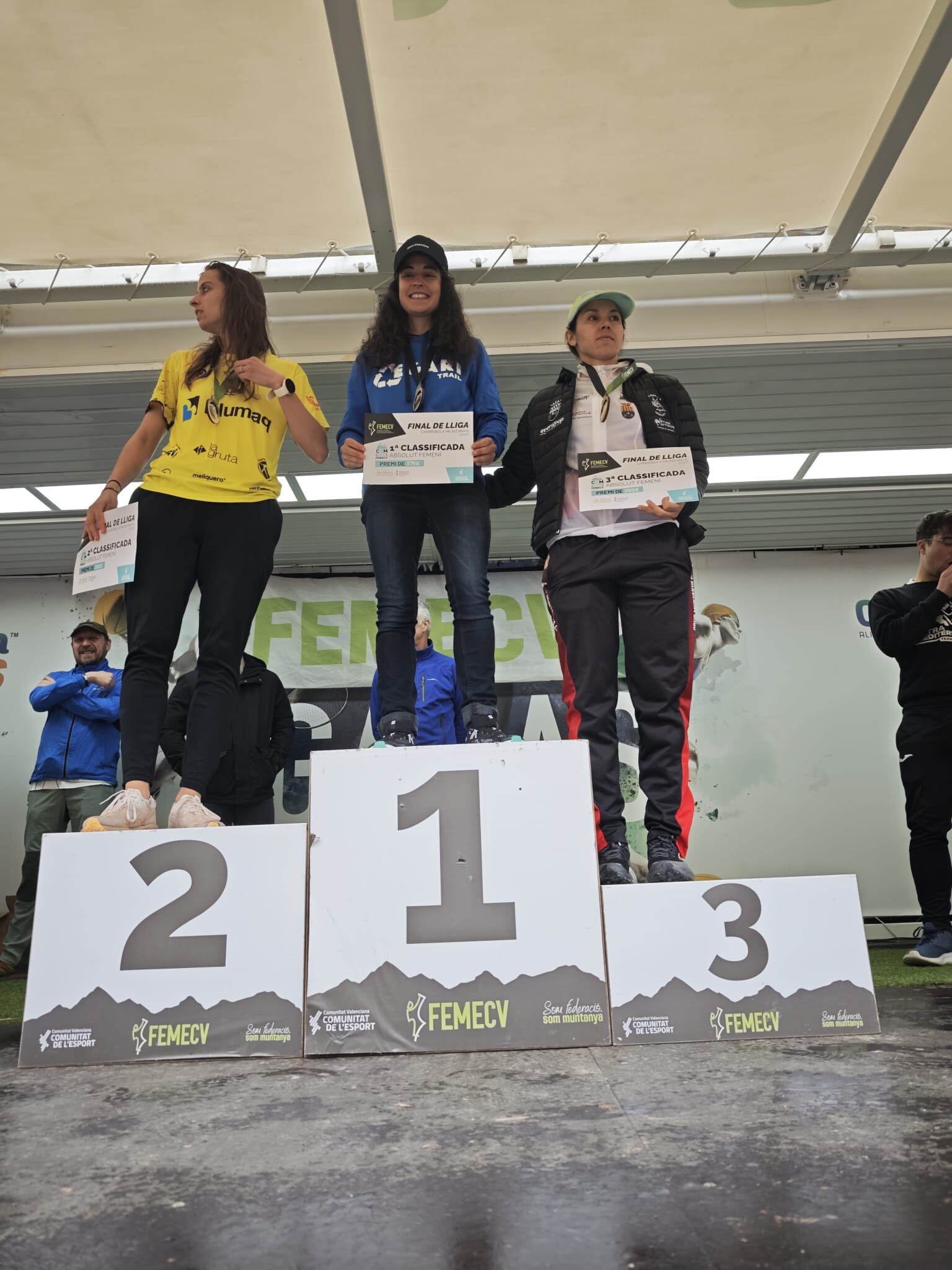 La prueba absoluta, con un recorrido de 24 kilómetros y 1.350 metros de desnivel positivo, decidió buena parte de la clasificación final de la liga organizada por la FEMECV. En la categoría masculina, el triunfo individual fue para Álvaro García Bernabeu, seguido por su compañero Eduard Hernández, que terminó en segunda posición. El equipo completó su actuación con el 13º puesto de Rafa Murcia, primero en categoría máster, el 20º de Fran Bernal y el 29º de Carpena, segundo también en categoría máster.