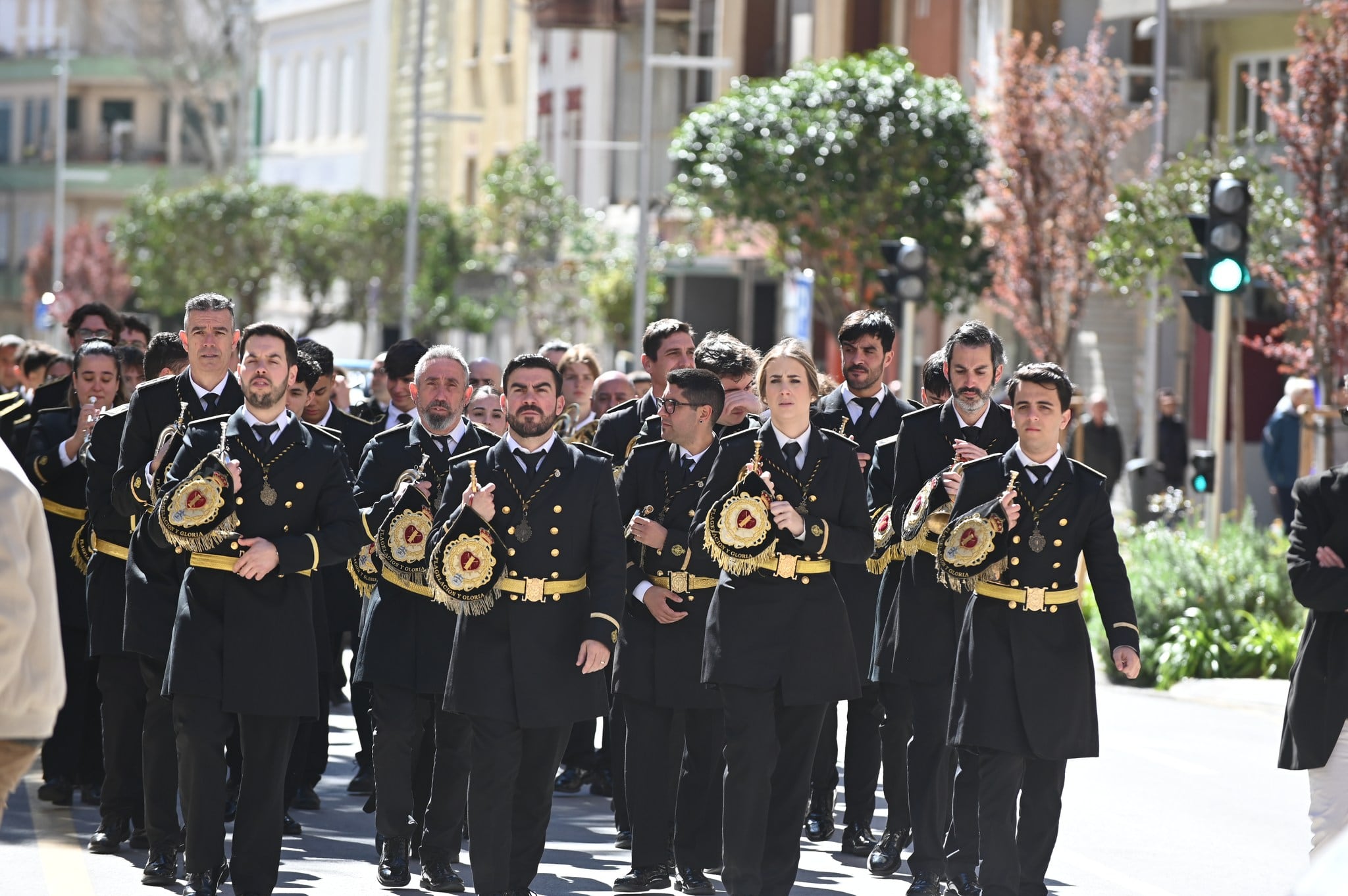 Previo al concierto, la banda ilicitana se ha dado un paseo, con su uniforme reglamentario, en un pasacalle por nuestra Ciudad, anunciando el evento