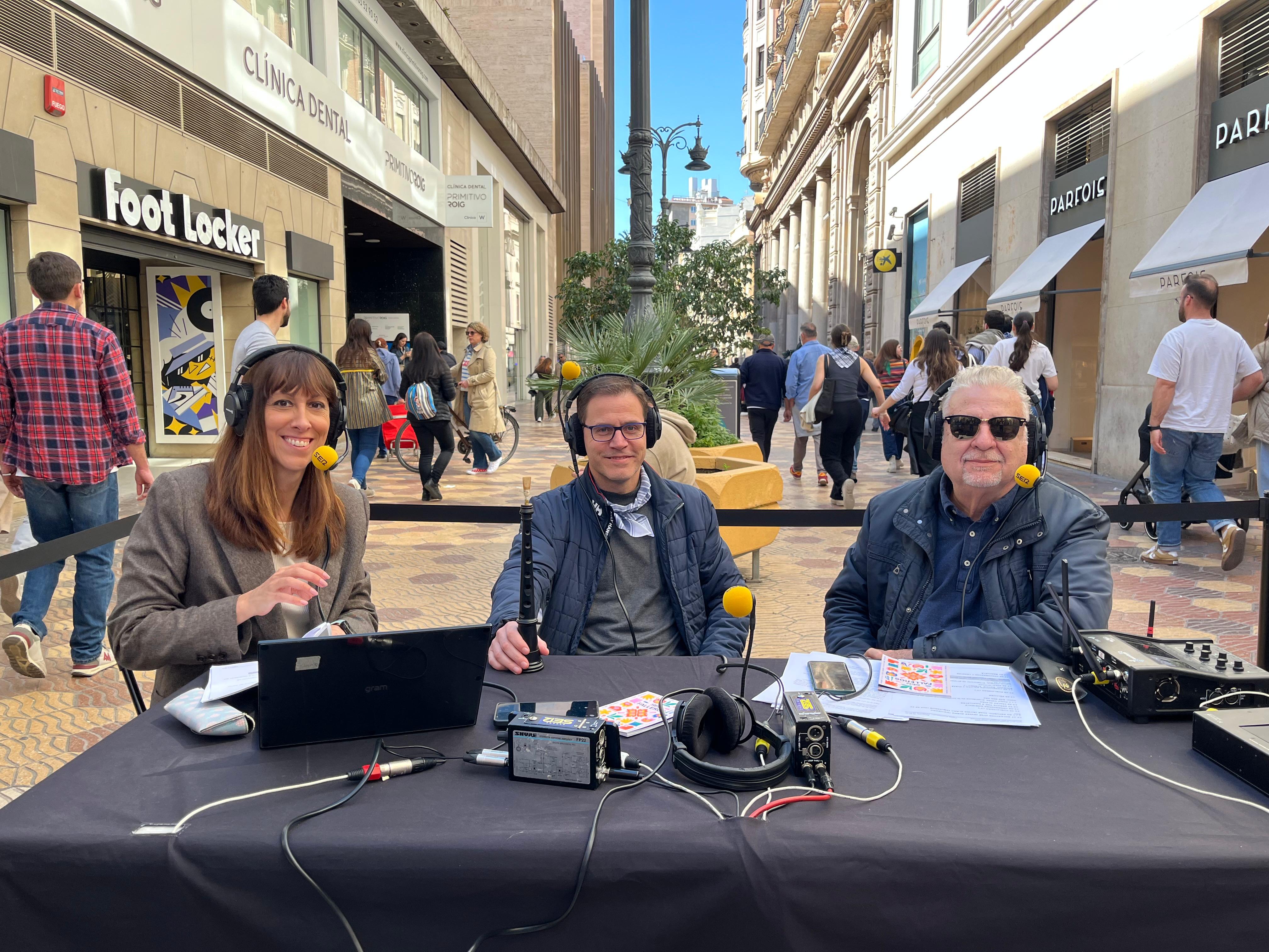 El set de radio se traslada a la calle Don Juan de Austria, acompañado por el equipo de SER Falleros, que recorre parte de la ciudad