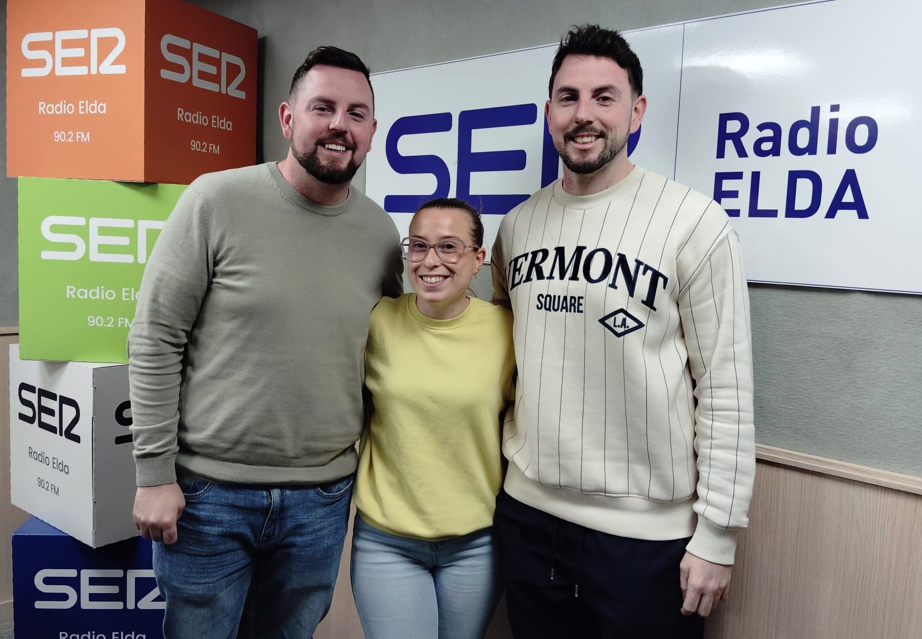 Alberto y Enrique Guil Pérez, junto a Conchi Ruiz Peñarrubia, durante su entrevista en el estudio de Radio Elda Cadena SER. / Cadena SER