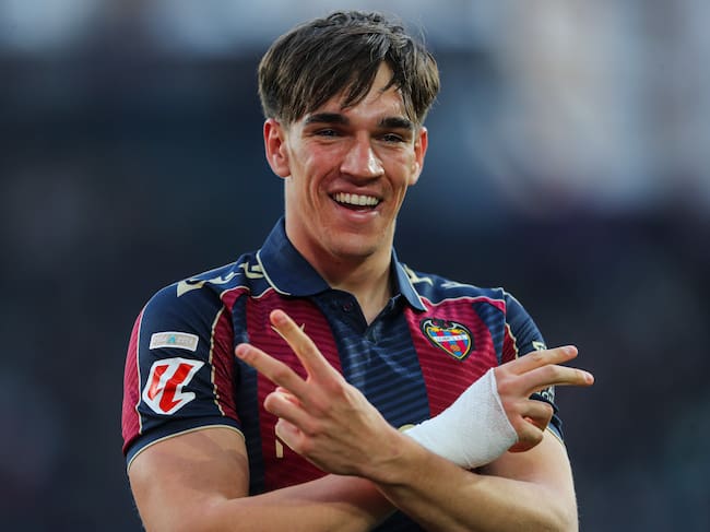 VALENCIA, SPAIN - MARCH 21: Carlos Espi of Levante UD celebrates a goal during the Spanish league, LaLiga EA Sports, football match played between Levante UD and Real Oviedo at Ciutat de Valencia stadium on March 21, 2026, in Valencia, Spain. (Photo By Ivan Terron/Europa Press via Getty Images) / Europa Press Sports