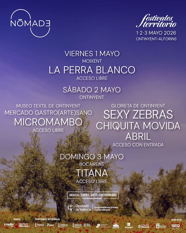El festival Nómade ha cerrado la programación de su nueva edición con una ambiciosa propuesta de experiencias que va mucho más allá de la música. Del 1 al 3 de mayo, localidades como Ontinyent, Moixent, Fontanars dels Alforins y Bocairent se convertirán en escenarios de un viaje sensorial donde el paisaje, el patrimonio, la cultura del vino y la gastronomía serán protagonistas.