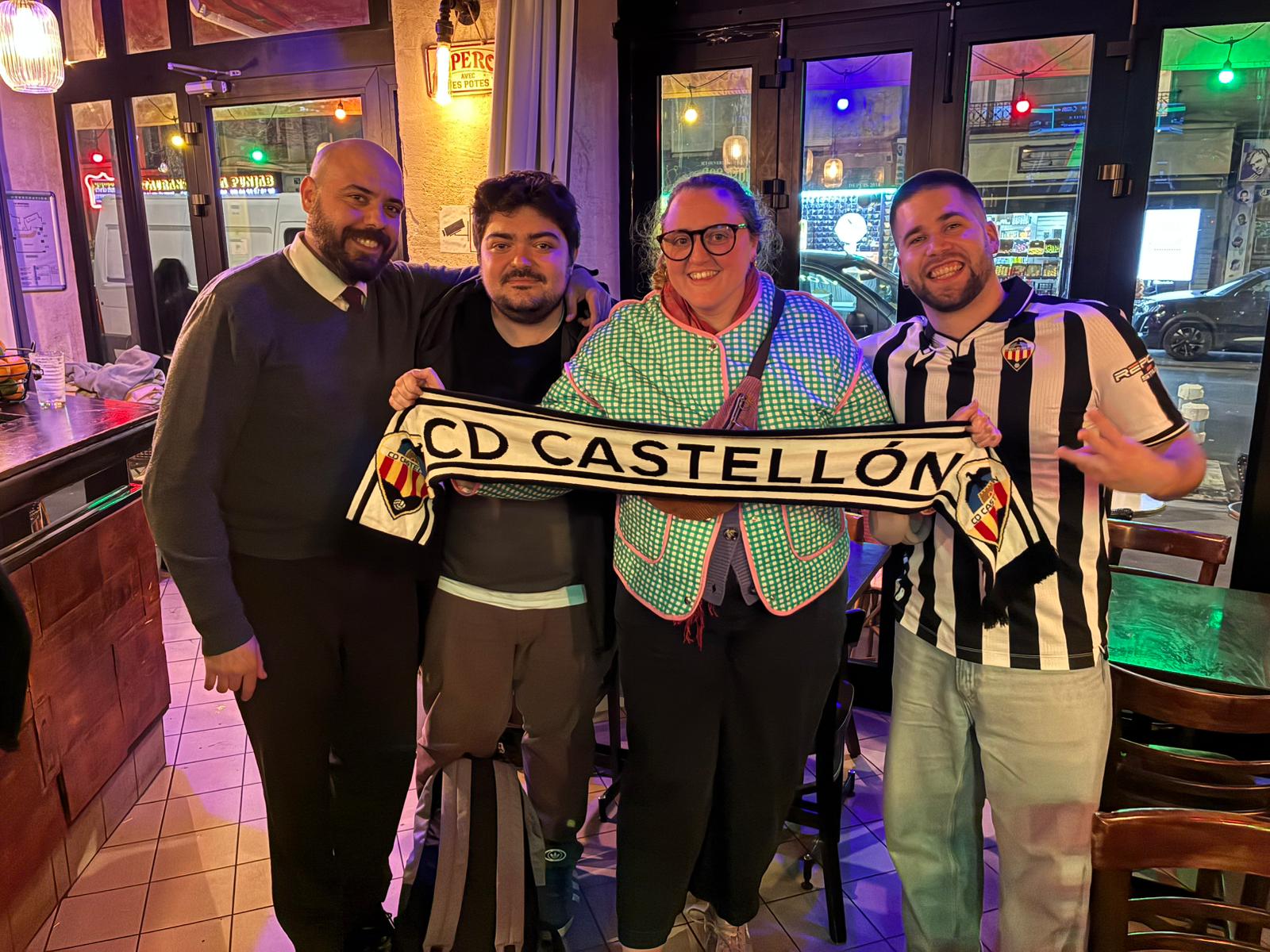 Esa atmósfera colectiva encendió la chispa definitiva: la idea, primero en tono de broma y después muy en serio, de fundar una peña oficial. Gracias a los consejos de miembros de otras peñas españolas en la ciudad y al apoyo de su entorno más cercano, la Peña Albinegra de París empezó a tomar forma. Hoy ya son 21 miembros, la mayoría sin vínculo previo con Castellón más allá de haber escuchado a Carlos hablar del club o haber visitado la ciudad.