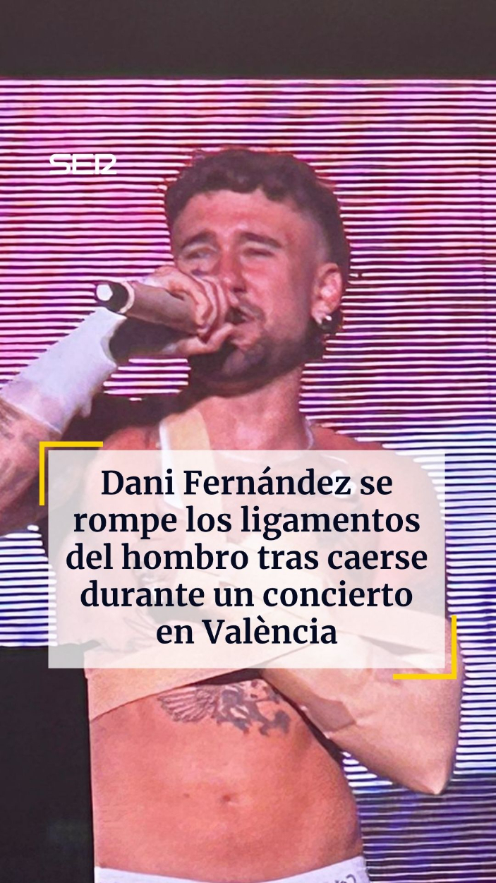 El cantante Dani Fernández sufrió una caída este sábado por la noche durante su segundo concierto en València, en el Roig Arena, que le ha provocado una rotura de los ligamentos del hombro, según ha explicado de madrugada en sus redes sociales.