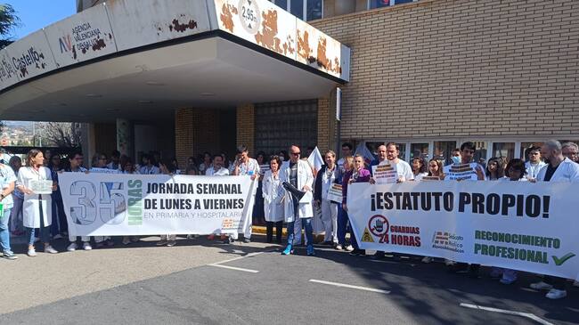Decenas de profesionales sanitarios se han concentrado este lunes a las puertas del Hospital General de Castellón y otros centros de Atención Primaria para reivindicar la creación de un Estatuto Marco propio, la regulación de las guardias y mejoras salariales.