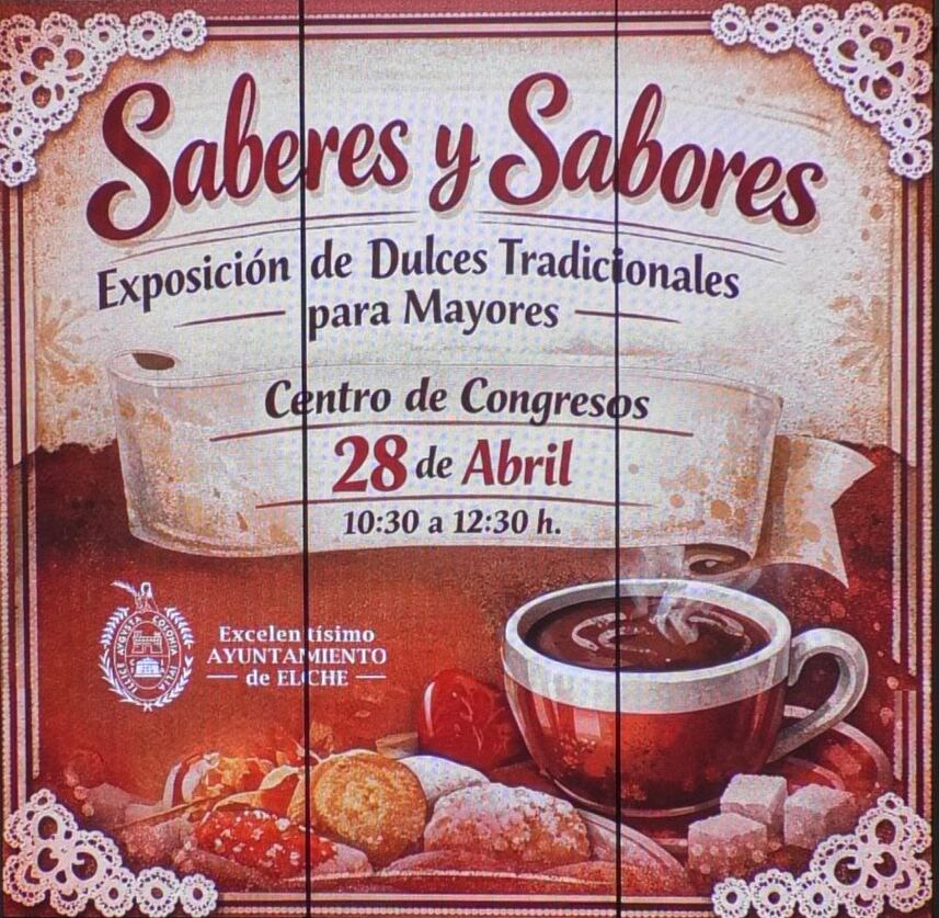 El Ayuntamiento de Elche, a través de la concejalía de Infancia, Familia y Mayores, ha celebrado hoy la exposición de dulces tradicionales “Saberes y Sabores”, una cita con los mayores de 60 años empadronadas en el municipio. El evento se ha ubicado en el Centro de Congresos y ha acogido a un total de 26 personas participantes y acompañantes.