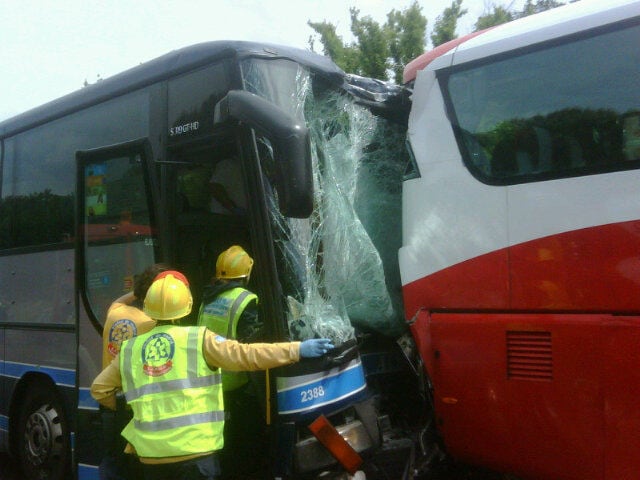 Dos autobuses han colisionado a la altura del 'Puente de los Franceses'. Por el momento hay 15 personas heridas, una de ellas es uno de los conductores que ha quedado atrapado, su estado es grave