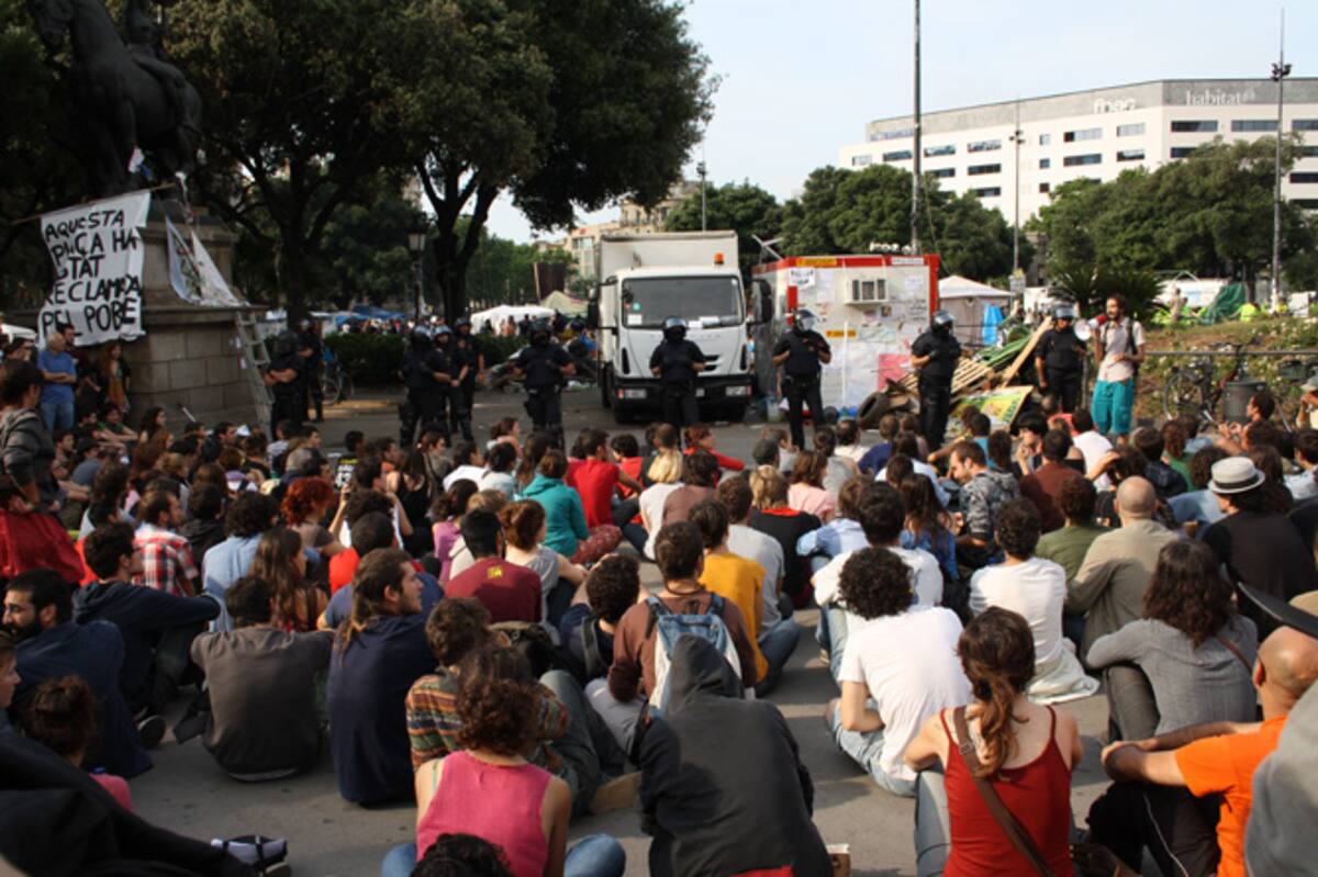 Sentada dels acampats davant dels agents