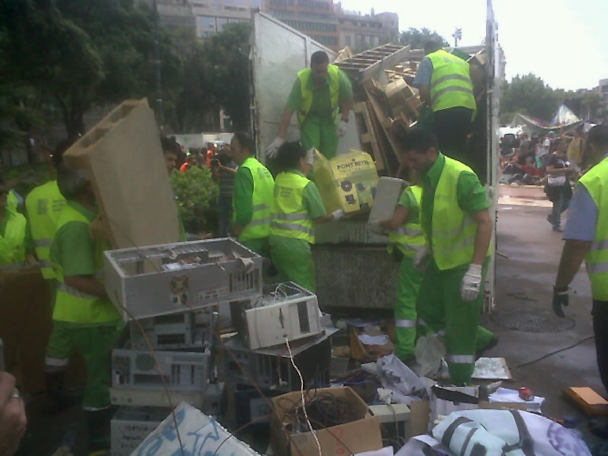 Brigada de neteja enduent-se material de l'acampada