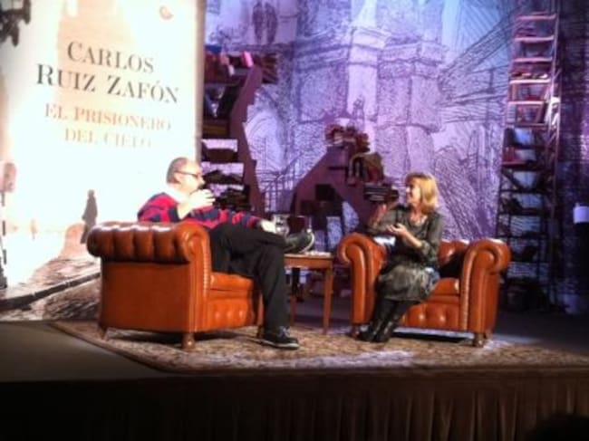 En un escenario que reproducía el cementerio de los libros olvidados, Gemma Nierga ha conversado con el autor, que vive a caballo entre la ciudad de Los Ángeles y Barcelona, sobre El prisionero del cielo que arranca con una tirada inicial de un millón de ejemplares en castellano que se sumarán a los 25 millones editados de los dos anteriores títulos de la tetralogía.